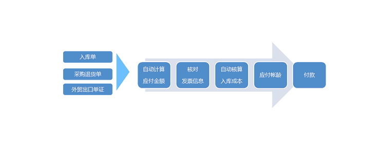 按照采购到货自动计算应付款,税额,费用等,核对发票信息,并自动核算入库成本和应付帐龄,做好付款准备,按计划付款